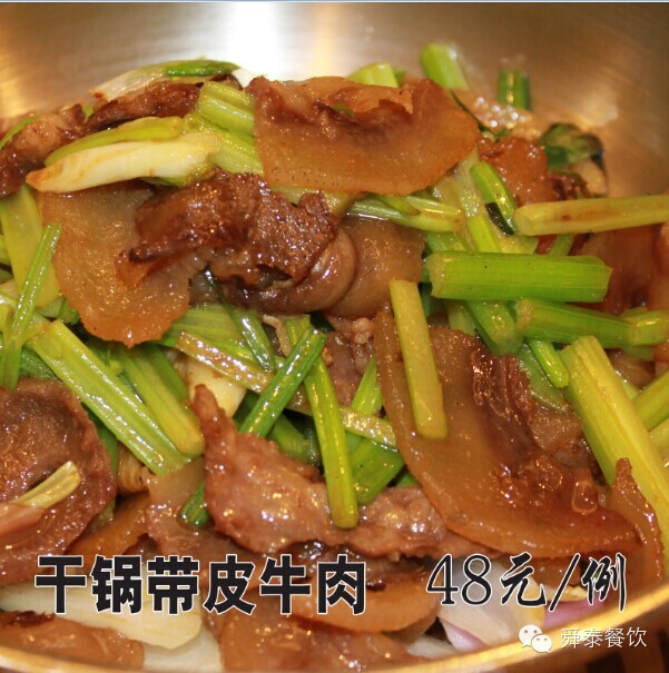 【原料】帶皮牛肉;輔料:杭椒、山芹、蔥頭